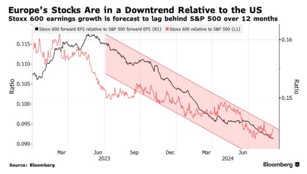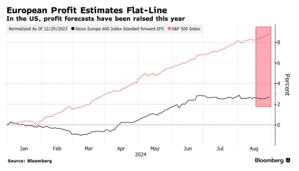 欧洲市场本来可以从投资者远离大型科技股中获益,但他们却转向了美国市场中被低估的板块。投资者的偏好受到显示美国经济韧性的数据以及美联储将比此前预期更早、更激进地降息的预期的推动。