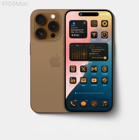 据外媒9to5Mac最新晒出的一组渲染图显示,与此前曝光的消息基本一致,全新的iPhone 16 Pro系列将新增一款古铜色钛金属配色版本,将取代iPhone 15 Pro系列上的蓝色,整体效果类似iPhone 5s/6系列的香槟金,但是色调更深一些。同时,该系列的中框也会从上一代类似拉丝的处理更换为亮面,与此前不锈钢中框呈现类似效果。值得注意的是,此次iPhone 16 Pro系列共提供四款配色,分别是白色、黑色、原色、古铜色。